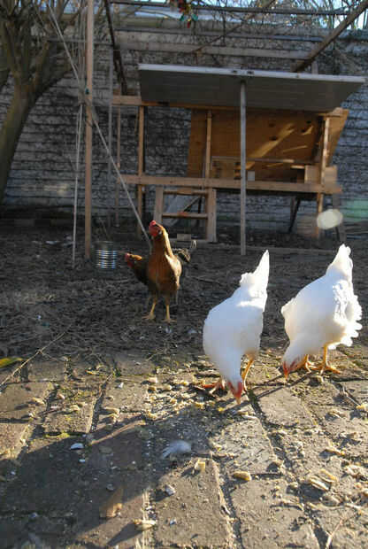 Estas cuatro aves (pantano de Margarita dos, una perla y un estándar) se vieron obligadas a vivir en la choza en la tierra detrás de estas primeras fotos. Se criaron en el barrio de Broadmoor de Nueva Orleans.