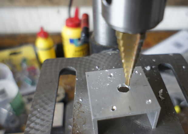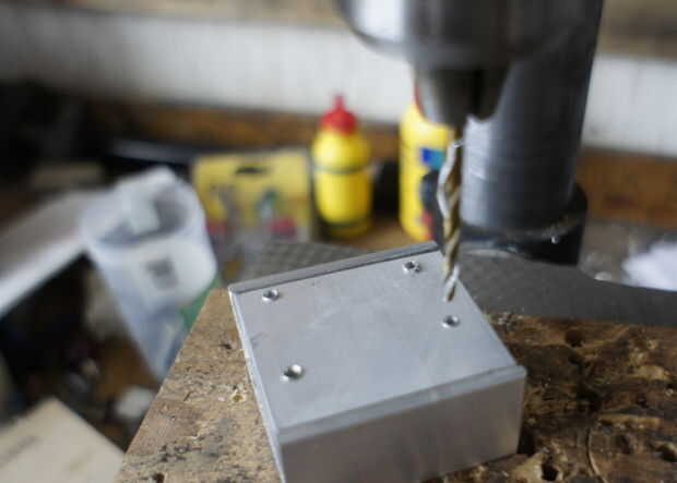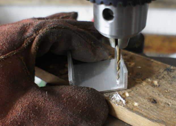 Voy a poner todo junto con los tornillos M3 así que perforar agujeros de 3 mm. (Yo utilice siempre guantes gruesos cuando perfore pequeños pedazos como esta. A veces el taladro agarra el pedazo y puede hacerte mal si no usas guantes)