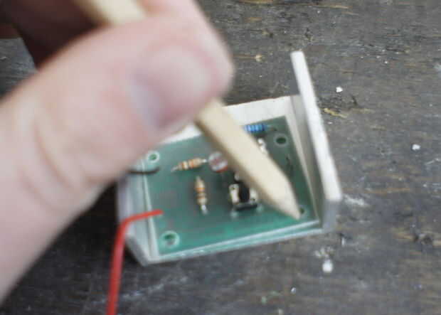 Debe haber un agujero más en la parte superior. Este agujero debe estar justo encima del sensor de luz en la placa. Así que poner en la placa y marque hacia fuera.