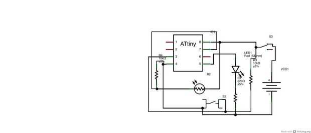 - Pin 1 (este Pin está marcado con un punto sobre el ATtiny) va al Pin 10 en el Arduino.