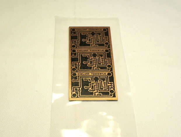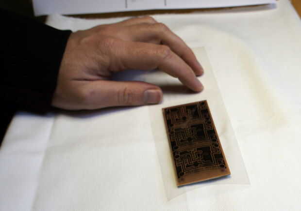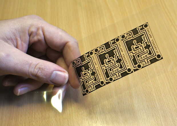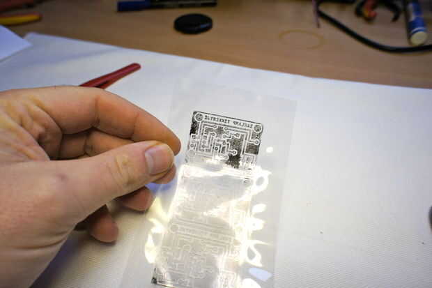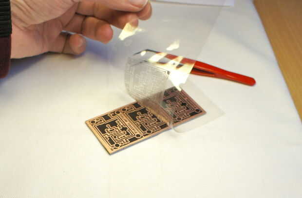 Ahora retire con cuidado la hoja transparente del cobre y, si todo ha ido bien, su diseño es sobre el cobre.