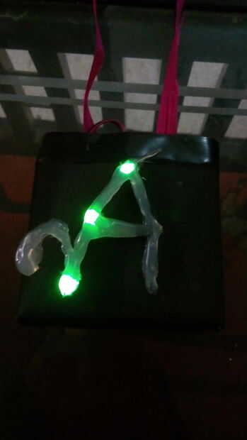 Hice solamente mi iniciales como mi nombre pero usted puede hacer su propio usando su nombre completo porque la letra A fue hecha usando pegamento caliente.