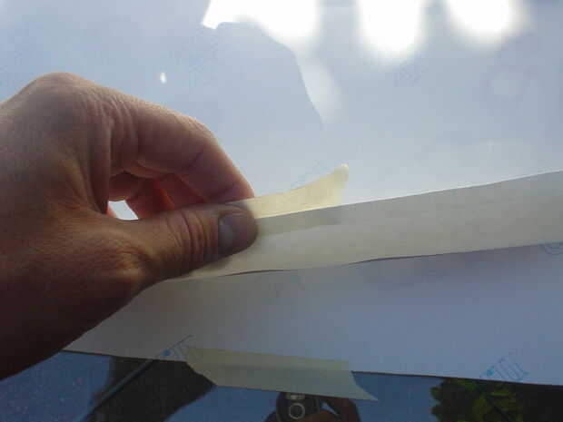 La capa de Borgoña en su lugar a la capa de plata de la cinta. Puede que necesite recorte papel forro.