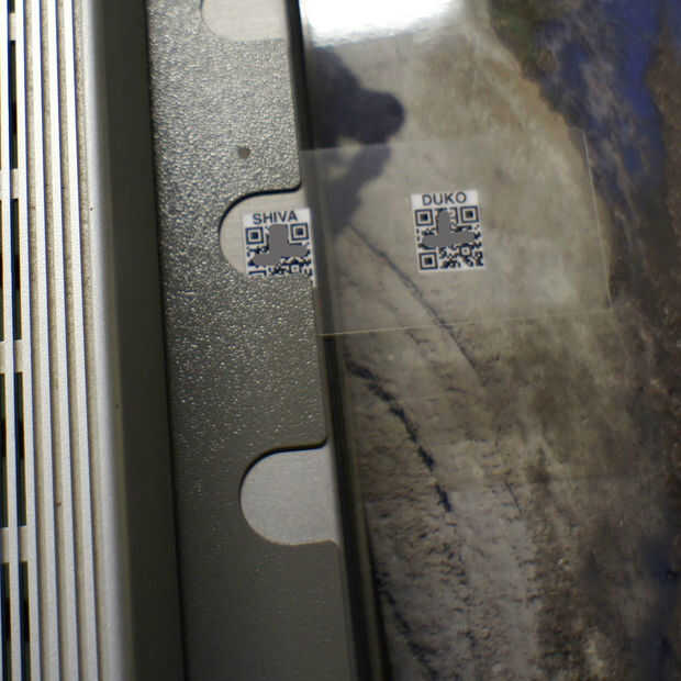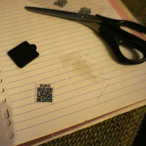 Es un poco incómodo para el laminado código QR en la etiqueta y usted puede añadir una gota de pegamento para mantenerlo.