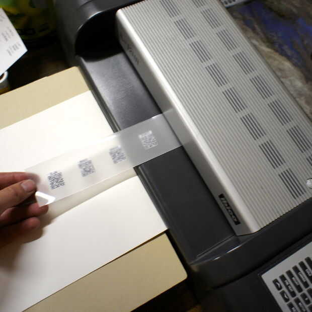 Para impermeabilizar el QR-code, tuve les laminado en mi tienda de copia local. Tenían algunos laminado de chatarra que era más de lo suficientemente grande como para que mis códigos, así que no me costó mucho.