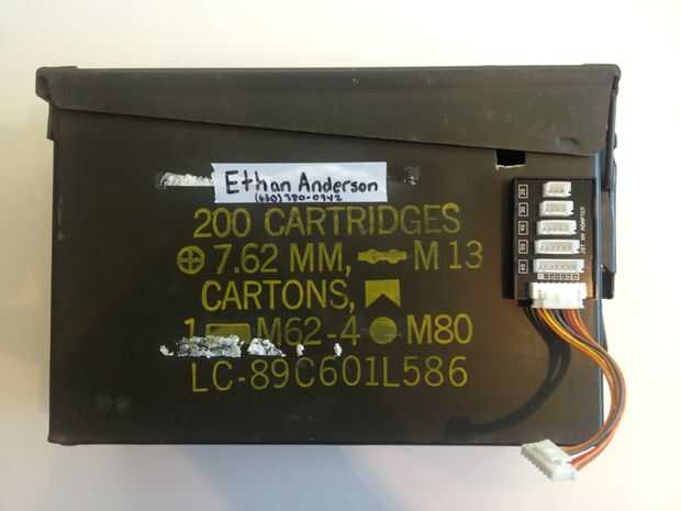 Carga bolsa de caso- LiPos nunca debe ser cargado en un espacio abierto por razones de seguridad. Si algo sale mal en una LiPo, será literalmente disparar llamas , fácilmente configurar nada en el fuego. Mayoría de la gente carga sus LiPos en bolsas de LiPo, que se rellenan, incombustible mangas que pueden ventilar el humo hacia fuera pero mantener las llamas. Sin embargo prefiero el método de la caja de munición, sobre todo porque se ve mucho más frío y bien asusta a la gente. Con fines ilustrativos de este Instructable, yo estoy cobrando mi LiPos en aire libre, pero jamás haría así que de lo contrario, como mantener tus LiPos seguras mientras carga es probablemente la cosa más importante para que usted puede hacer.