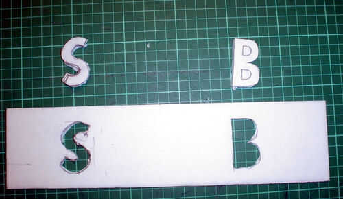 Si utiliza un diseño intrincado, utilice el palillo del pegamento y pegarlos en el tablero de la espuma. Desde esta sección será cubierta por papel de regalo más tarde, los restos de pegamento no importan. De lo contrario, simplemente bosquejar la carta en el tablero de la espuma. Deje aproximadamente media pulgada de con ser cortado en cualquier línea del diseño. Esto asegura que el efecto resplandor será bien visible en el resultado final. Corte el diseño con un cuchillo afilado de precisión. Para cualquier letras, como "B", conjunto corte aparte, con los "agujeros" más adelante.