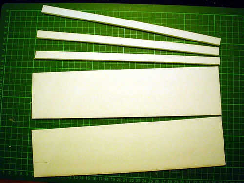 Cortar las piezas de la caja, fuera del tablero de la espuma, usando un cuchillo afilado con una hoja fresca y una regla. Esto reduce los bordes irregulares en el tablero de la espuma, que hace más conveniente para pegar más tarde. Dejar de lado las secciones posteriores y del lado por el momento.