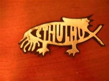Ya que mi proyecto necesita 2 capas, uno como un fondo, como la forma y las letras, corte el fondo ligeramente más grande que el primero plano y había izquierda sólida. Para el primero plano había cortado alrededor de las letras, pero las adjuntas de arriba y abajo a la izquierda el "cuerpo" de Cthulhu para hacer más fácil pegar. Hice todo el corte mirando "En Brujas" (gran película, por cierto)
