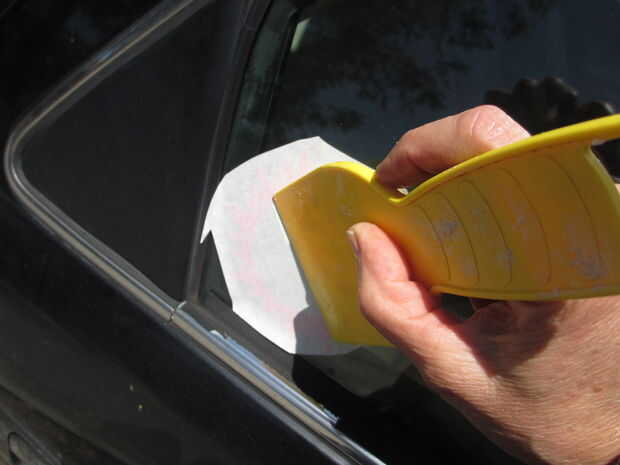 he decidido a poner a los de las esquinas traseras del pasajero ventanas en el asiento trasero. De esta manera ellos no impiden ver los pasajeros, pero seguiría siendo visibles mientras que escaneé las filas en busca de mi coche. Utilicé un rodillo de goma para poner en el windows limpio.