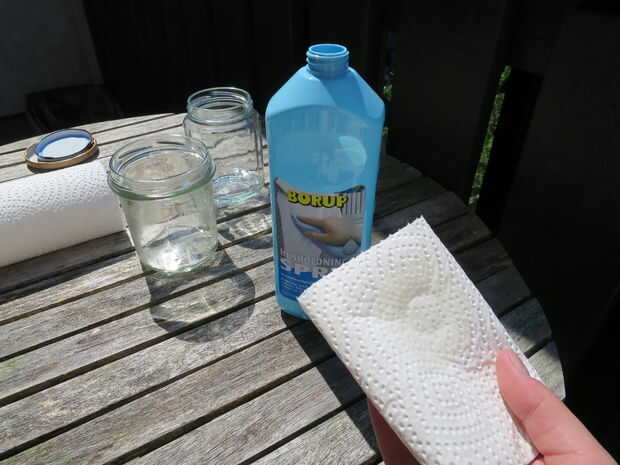 Truco número dos es realmente simple, pero no mucha gente sabe esto. Todo lo que necesitas es alcohol / alcohol. Poner un poco en una toalla de papel y frote el tarro un poco. El pegamento poco a poco desaparecerá, y tu tarro será agradable y suave.