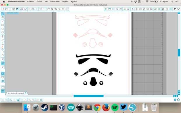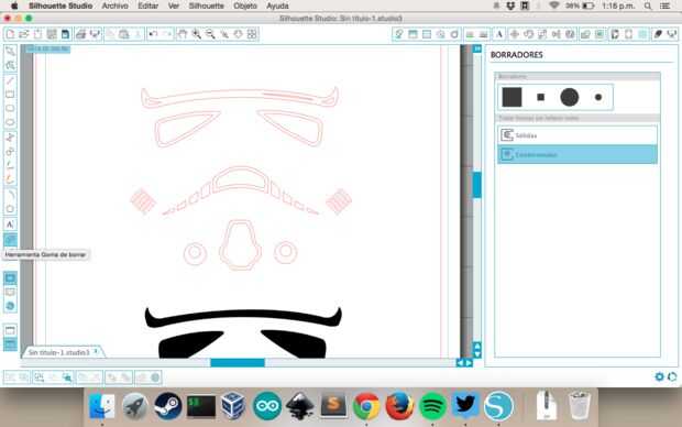 Retiramos nuestra imagen principal (la está en color negro) y podemos observar existen unas lineas extras at nuestro trazo de color rojo, eso lo vamos a solucionar con la herramienta "goma de borrar".