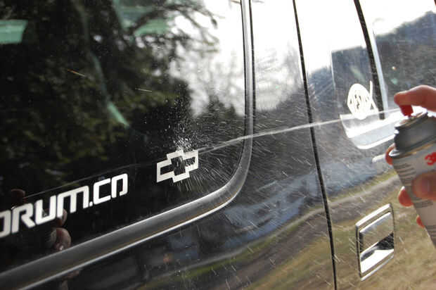 Paso 2 Si hay algún adhesivo izquierdo tras retirar las pegatinas (pasa en windows), rociar el removedor adhesivo pegatina y límpielo con un trapo limpio mientras que todavía ha mojado. Viene justo al lado, tan fácil como limpiar suciedad.