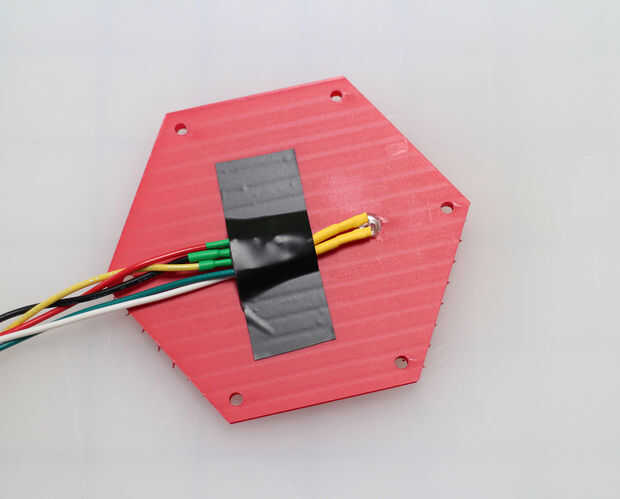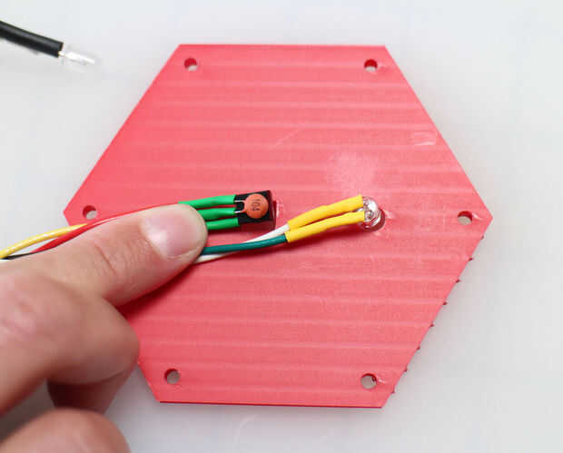 Presione el sensor y LED en sus respectivos orificios y cinta abajo de los cables.