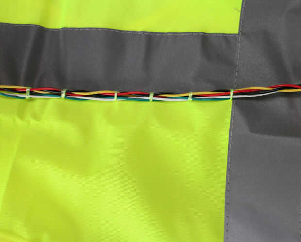 Coser los cables de la almohadilla del detector extendida a lo largo de la capa reflexiva.