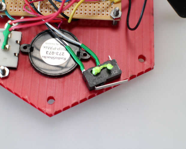 Si no tienes ningún tornillo de 2mm largo, un hilo funcionará bien para fijar el interruptor de palanca.