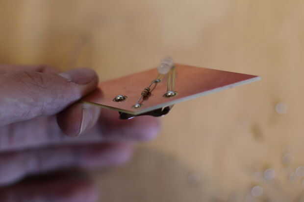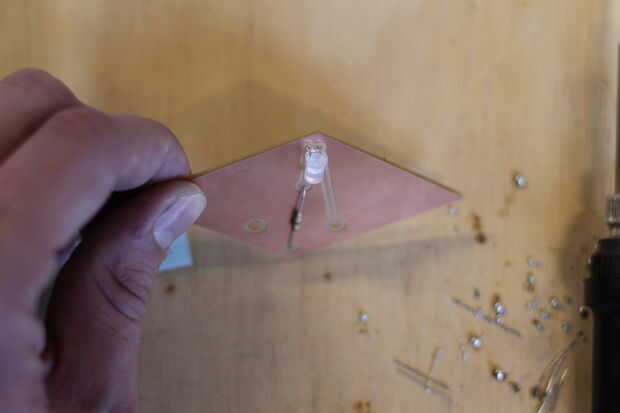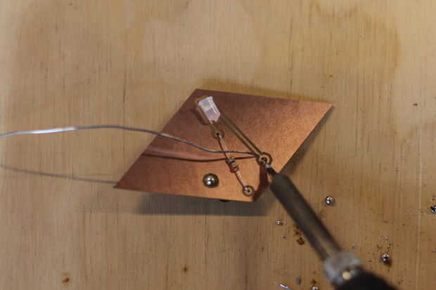 • Soldar las patillas de la resistencia y las patillas del LED.