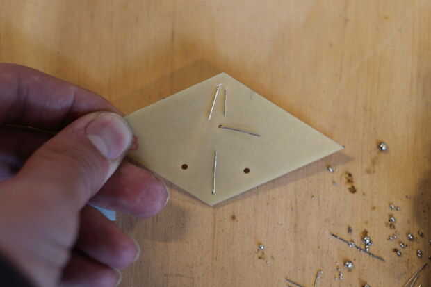 • Introducir los pernos de LED a través de los agujeros en la placa, asegurándose de que el pasador largo va en el agujero que se atrace conectar a él (ver imagen #4 Si no estás seguro) y doblar las patas contra la parte posterior de la Junta.