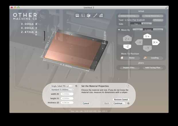 Abrir Otherplan, conecte el Othermill, activar e inicio de it. A continuación, obtener todo listo para cortar la placa de circuito.