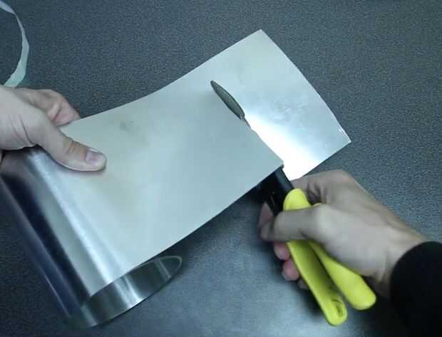 Agarra ese rollo de aluminio. Sólo necesitamos una pieza de 3 "x 4", pero lamentablemente no es vendido este espesor específico de aluminio en piezas únicas. Si se tratara de cualquier disolvente, no es robusta; Si fuese más grueso, sería demasiado duro doblar limpiamente. No te preocupes, que usará el resto de ese aluminio cuando tus amigos ven tu nombre impresionante de la etiqueta y pedirle que haga más.