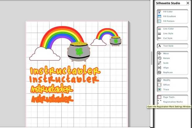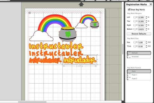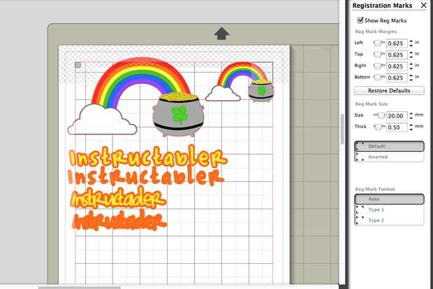 - Imprimir una página de prueba con un regular pedazo de papel y enviarlo a través de la silueta. Con esto puede asegurarse de que las marcas de registro se imprimen correctamente y se puede ver cómo las líneas de corte línea. Para mí, necesitaba mover las líneas de corte ligeramente a la izquierda de mis imágenes para que las cosas para cortar derecho. Al mover las líneas de corte, sólo utilizar las teclas de flecha en el teclado mantener los movimientos leves y más controlado.