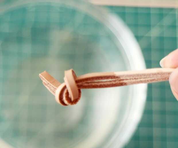 Pruebe y haga sus nudos para que los dos extremos ponen perfectamente encima de la otra. Para asegurar el nudo, sumergirla en agua y tire firmemente. Una vez seco, el cuero quedará puesta y no.