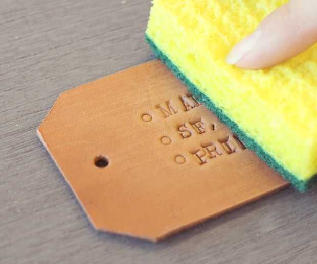 - Donde usted puede usar su martillo para aprovechar su sello con firmeza el cuero. Esto funciona bien para los sellos de la carta y piezas de metal.