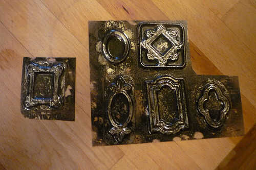 Rocíe con una capa más de pintura negra, asegurándose de que el negro se mete en las grietas. Luego limpie las partes altas con una toalla de papel mientras que todavía húmedo para revelar algunos de la plata. Jugar alrededor con esto, es algo de ensayo y error, hasta obtener la apariencia que desea.