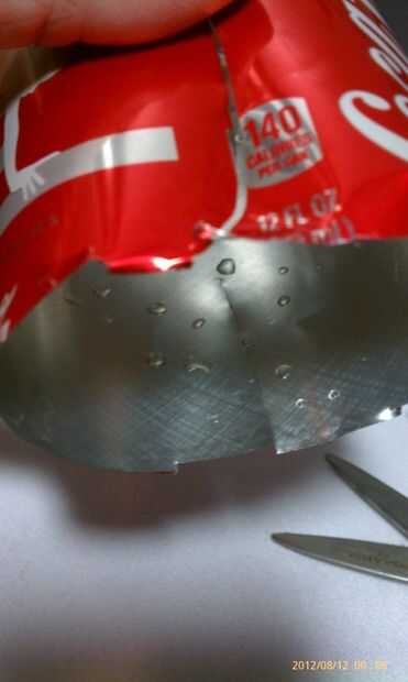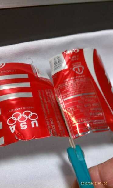3) esto más fácil, encontré complicado pero fácil. Corte a medio camino el poder para cortar por la mitad.  La vuelta la lata y cortar a mitad de camino del otro lado.  Acabado de los cortes en ambos lados. Terminarás con dos pedazos casi iguales.  No será perfectos. Nadie es perfecto.  Personas, cortadas latas y etiquetas de la planta no necesitan ser perfecto.