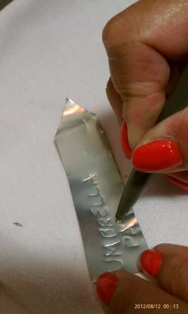 Hacer sus propias etiquetas, cualquier forma que desee. Hice la forma clave de mina ' cuz mis llaves me llevo cuando correr o ir al gimnasio.Materiales:Cualquier metal fino, utilicé metal de un caso de fuente de poder de PC.Esquileos de metal para co