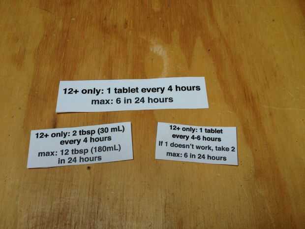 Así que ahora, cuando estés clara cabeza cómoda delante de su ordenador, lea la información de dosificación y escribir en fuente grande. Asegúrese de medir el espacio más grande en el envase se puede utilizar que no ocultar el nombre del medicamento o los medicamentos hechos y llenarlo con el texto más grande que puedas.