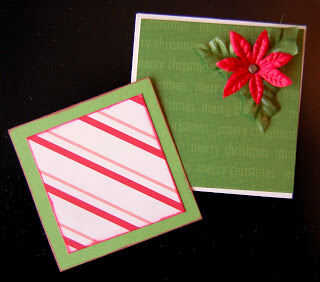 Flor de Pascua: decoré una pequeña envoltura por pegarse una flor poinsettia pequeña para verde papel con temas de la Navidad con un brad.  Pegué el papel verde que envuelve a la frente.  I luego cortar el papel de bastón de caramelo y utiliza tiza para hacer los bordes rojo y respaldado con cartulina verde por lo que encaja perfectamente en la envoltura pequeña que yo había decorado.  Para este proyecto, tengo un ramo de flores de la poinsettia pequeña en la sección de flores en la tienda de artesanía y simplemente sacó el centro oro y lo reemplazó con un brad así que quedaría en el papel.