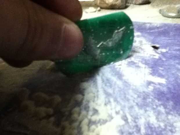 Ahora empezar por los bordes en forma de lijado. Para esto, yo con grapas un pedazo de papel de lija de grano mediano a mi banco de trabajo. Esto funciona mejor. No intente utilizar una lijadora de banda u otra lijadora tipo de motorizados. Arenas abajo rápidamente bastante de todos modos.