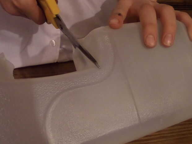 Usted entonces cortar la botella en la mitad del agujero donde el mango solía ser