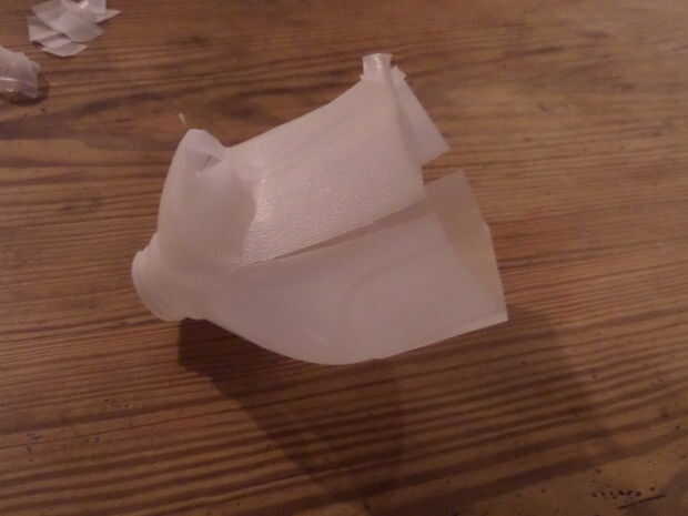 Cortar la parte superior de la botella por lo que tiene aletas como eso.