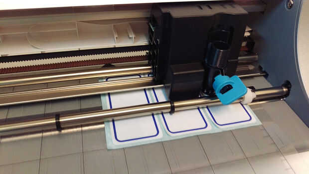 Tomar algunos configuración cuidado de la herramienta de corte. Hemos utilizado valores de papel fino, aunque probablemente podría haber sido incluso un poco más delgado. Cortador de la silueta se establece en "1" de profundidad, quedaron otros parámetros en el software en valores por defecto. Si usted tiene algunas pegatinas de repuesto (y más paciente de lo que estábamos) entonces algunos prueba cortes.