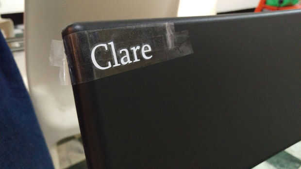 En retrospectiva, esto sería aún mejor con las fuentes que no tienen ninguna áreas cerradas en las letras (a diferencia de "la a" y "e" de Clare). Futuro buscar fuentes sin "contadores" (que es el nombre propio para los espacios cerrados) - vea algunos ejemplos aquí lo que parece.