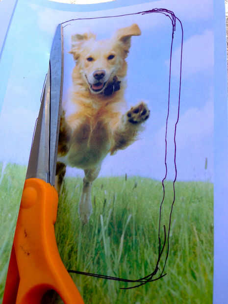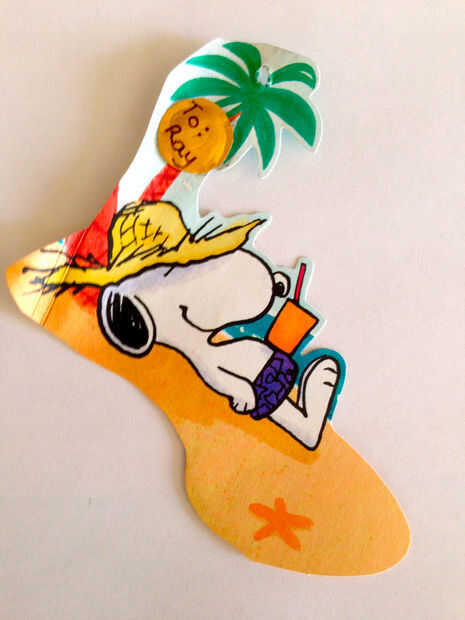 Me gusta etiquetas regalo grande así que usé mi teléfono celular y colocarla sobre la parte de la tarjeta que quería utilizar. A continuación, había trazado con la pluma de marca y recórtalo. También se puede hacer una etiqueta de forma de forma libre. Delinear el área que desee y corte hacia fuera. (véase al Snoopy en la forma de la etiqueta de playa).