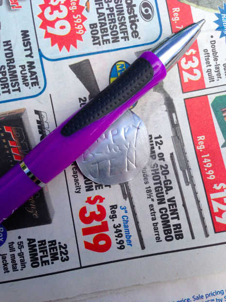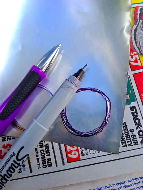 Ahora utilizar su bolígrafo y escriba o dibuje sobre el aluminio. Usted debe presionar difícilmente bastante dejar una línea grabada abollada. Práctica en algunos repuesto aluminio puede primero. Ahora puede acentuar la línea escribiendo en la línea abollada con la pluma de marca fina. Esto pondrá de relieve su relieve dándole un color contrastante del aluminio.