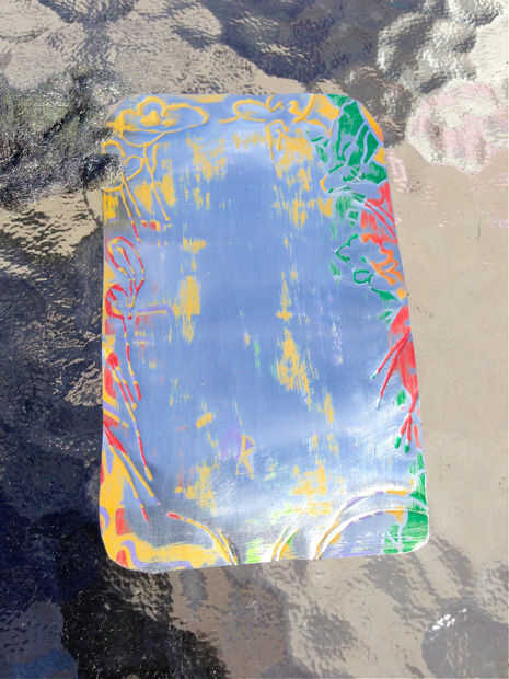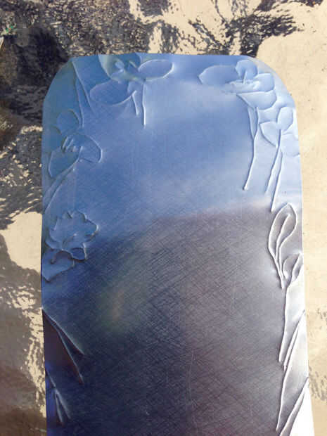 Tienes la opción de añadir color en toda la zona relieve y suavemente con lana de acero para llegar al color del metal de las zonas elevadas. Esto deja el color de fondo