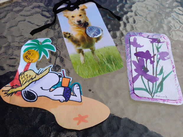 Usted tendrá algunos metal pegado abajo plana como la etiqueta de"Iris" y "Coco Freeform Snoopy Tag".