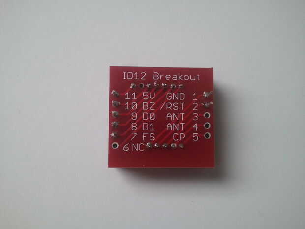 ID-12 tiene espaciamiento del perno inusual. Recojo el breakout Junta de SparkFun (SEN-08423 ) para hacerla caber fácilmente en su protoboard.