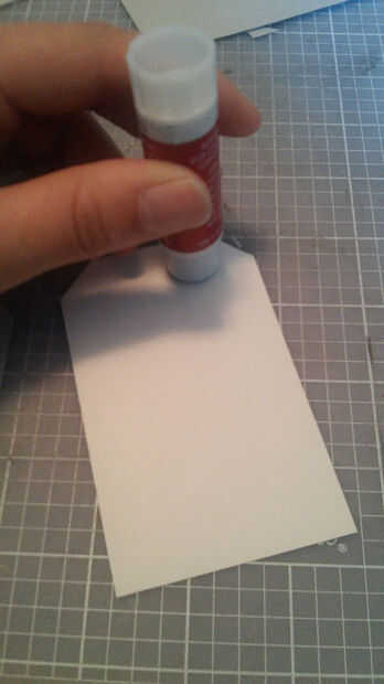 Luego usé un palillo del pegamento para pegar la etiqueta de regalo para el respaldo.