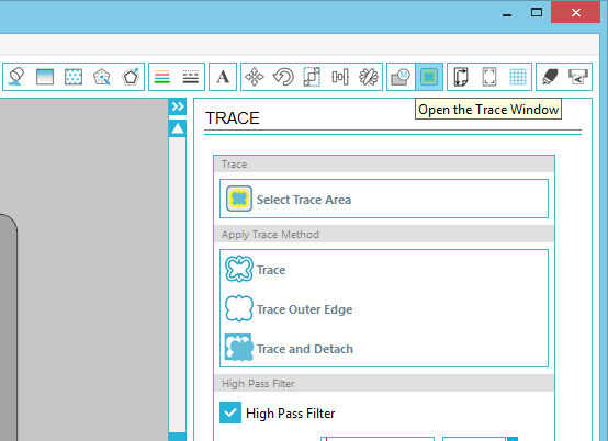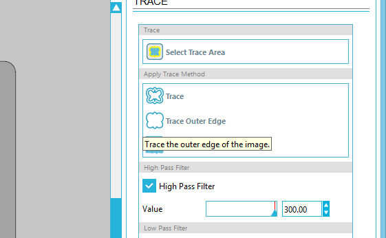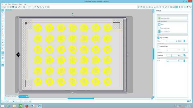 Si tu imagen no se vuelve completamente amarilla, aumente la barra de filtro de paso alto hasta que toda su imagen se vuelve amarillo, pero no tan alta que comienza a cubrir el área circundante. También verifique que las líneas que dibujó alrededor de la zona de marca de registro amarillas - si alguno de ellos no, dibujé demasiado cerca y se necesita volver a trazar los un poco más hacia fuera.