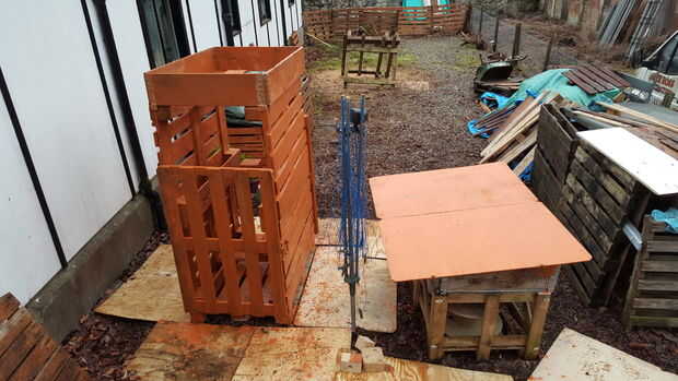 Opcional - luego pinté el techo revestidas de plataforma caso llovió mientras que espera para el registro de la plataforma principal vertiente para secar.