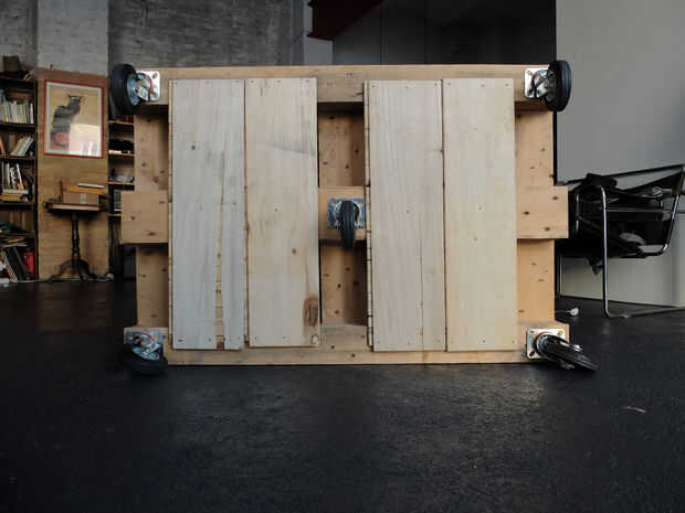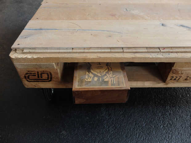 También, la parte inferior del clavo que parqué (o cualquier otra madera fina) por lo que se pueden colocar objetos en el interior del pallet. Realmente he sido un lil vago aquí. Si haces un agujero para el weel central en la madera inferior, puede poner más cosas dentro de la mesa de la sala de estar.