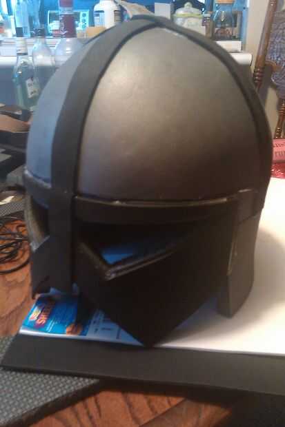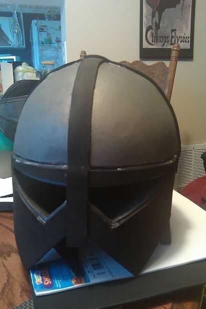 Utilizando la plantilla en el paso 4, corté una segunda placa frontal (negro, en la fotografía superior) de 3 mm de espuma de artesanía. Esta pieza puede no ser necesaria, pero me gustó lo que parecía en el momento. Asegúrese de usar un montón de cinta y siga el mismo procedimiento con la placa de espesor. Corte los ojos un poco más grande por lo que mostró parte del material detrás de él. El pegamento de la placa frontal negro en con pegamento caliente, teniendo cuidado a todo correctamente.