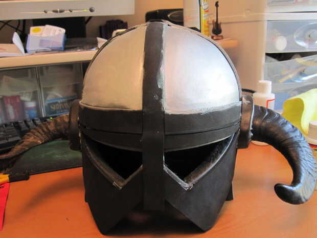 Como toque final a la pintura, algunos de los bordes de espuma expuesta pinté con pintura acrílica negra plano. Esto era más para mí en contraposición a la apariencia, porque pretende usar esta fuera en el sol y no quería agujeros plata ojo que refleja la luz del sol en mis ojos. Esto puede hacerse también en las piezas de espuma si ha expuesto que la espuma también conectar a los cuernos. Esto es, por supuesto, opcional y se puede reemplazar con lo que colores crees que encajará con tu estilo de timón.