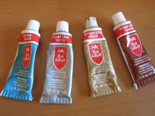 Esto puede no ser necesario, pero Iniciado por aplicar pátina Rub'n aficionado a las piezas de acero-como. Se trata de un acabado metálico azul brillante, pero fue pensado para ayudar a que la plata aparece más brillante. Creo que ayudó, pero añadiendo una capa extra de plata puede hacer la pátina innecesaria. Puede aplicar el rubnbuff con los dedos (yo usé guantes porque puede ser un dolor para lavar) o un cepillo, pero asegúrese de que esperar a pintar la moldura hasta después de la parte principal del timón se lo puede cubrir pintura manchada en el ajuste más adelante. Al aplicar el beneficio de rub n, no se aplican demasiado a la vez. Ir fácil y borrón de transferencia pequeños pedacitos a la vez hasta que usted no puede mancharlo cualquier aún más. Un poco va un largo camino. También recordar a borrón de transferencia en la dirección de los trazos de su pincel. Use una toalla de microfibra para pulir las escamas sobrantes y pedacitos de cera apagado después de media hora o así, esto también ayuda a brillar arriba. Asegúrese de buff entre cada capa.