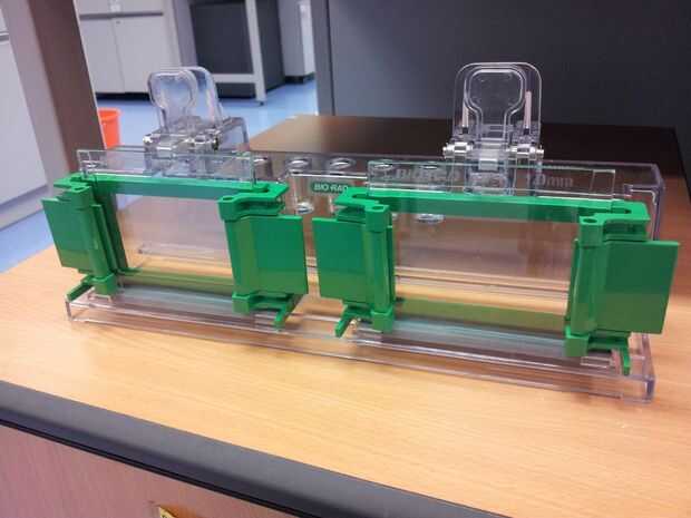 Aunque el protocolo para hacer tal hidrogel (gel de SDS-PA) está muy bien establecida y ampliamente disponible en la web (por ejemplo youtube), el protocolo todavía tiene espacio para mejorar. El objetivo de este experimento es optimizar la eficiencia de fabricación de un gel SDS-PA. Desde gel de SDS-PA formada por el principio de la polimerización radical en que amonio persulfato (APS) sirve como el radical iniciado por tetrametilo diamina del etileno (TEMED) mientras el inspirador de los disponibles en el mercado tabletas de APS/TEMED, se plantea una hipótesis sobre la factibilidad de hacer alícuotas de la mezcla de APS y TEMED.